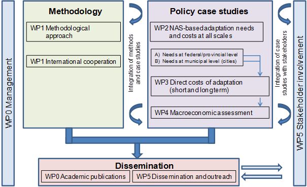 Die gesamtwirtschaftliche Beurteilung erfolgt mittels eines Computable General Equilibrium Modells, das im Rahmen des ACRP-Projekts COIN zur Evaluierung der Kosten des Klimawandels für Österreich entwickelt wurde. Zudem wird mit dem Projekt PATCHES, das die Kosten von Anpassung durch Private (Unternehmen, Haushalte,…) ermittelt, kooperiert.